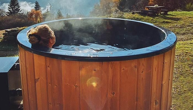• La prima metodologia, il bagno completo, prevede l'immersione totale del corpo in acqua a 38°C per 30 minuti all'interno della nostra tinozza finlandese, inducendo un processo di rilassamento muscolare.